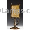 Silver plated Corinthian column supporting a 5 arm Candelabra with Cricklite domes (brass bands) supporting 5 original gold silk shades with blue beaded fringes (with original shade boxes)