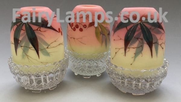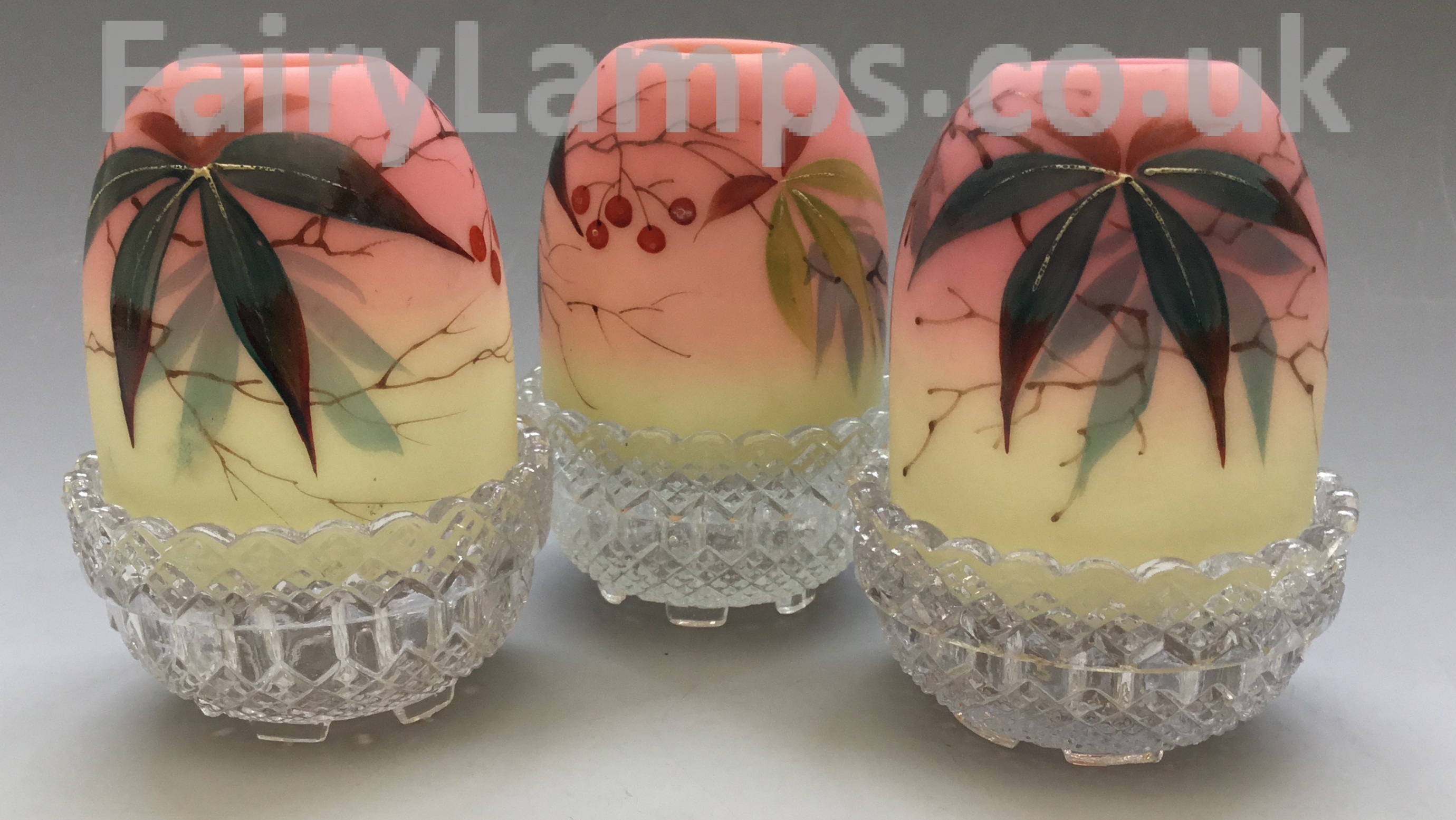 3 X Thomas Webb & sons pyramid size Burmese domes decorated Woodbine Pattern, all in Clarke clear cups