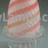 Pyramid sized yellow house sitting on a green lamp cup in the shape of a hill with steps running up one side. Base is impressed “S.Clarke Fairy Pyramid” depression for candle and ribbing to support dome.