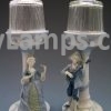 Pyramid sized Cranberry flower form with clear tooled petals on candlestick base