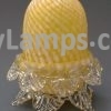 A pair of pyramid sized pale blue overshot domes with faux petals in Clarke cups (one cracked)