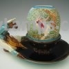 Fairy sized blue, cased white smocked dome acid etched “trademark Fairy” on a brass tripod base