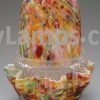 Fiary sized white ribbed dome with appiled lime green reverse spiral loop on a clear Clarke cup